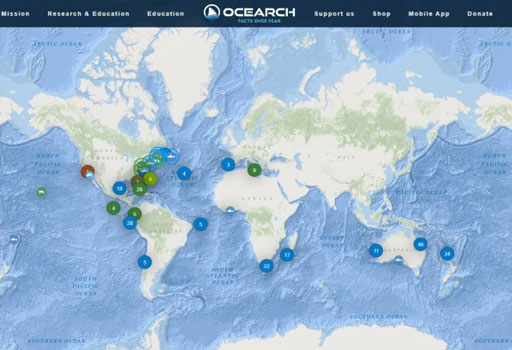 OCEARCH نامی یہ غیر منافع بخش تنظیم اور اس کی ایپ “گلوبل شارک ٹریکر” حقیقی وقت یا قریبی حقیقی وقت میں ٹیگ شدہ شارکس کی لوکیشن، نام، نسل اور پروفائل صارفین کو فراہم کرتی ہے۔ ایپ پر ایک نقشے کے ذریعے شارکس کی نقل و حرکت کو لائنوں اور پوائنٹس کی شکل میں دیکھا جا سکتا ہے۔