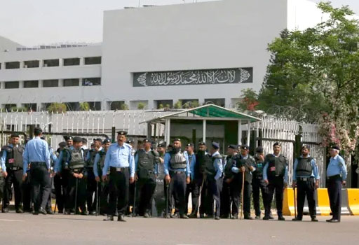 پارلیمنٹ گیٹ کے باہر بکتر بند گاڑیاں پہنچا دی گئیں جبکہ اسلام آباد ریڈ زون کو مکمل طور پر بند کر دیا گیا۔ پولیس کی بھاری نفری ریڈیو پاکستان چوک پر جمع ہوگئی، ریڈیو پاکستان چوک سے شاہراہ دستور کو مکمل بند کر دیا گیا۔