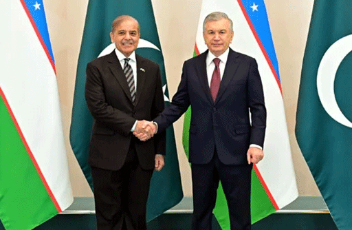 تاشقند۔وزیرِ اعظم شہباز شریف ازبکستان کے صدر عزت مآب شوکت مرزیایوف سے ملاقات کے لیے تاشقند کے کانگریس سینٹر پہنچے، جہاں وزیرِ اعظم کو گارڈ آف آنر پیش کیا گیا۔