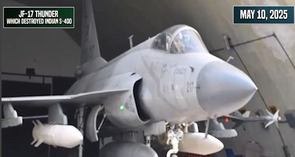 پاکستان ائیر فورس کے جے ایف 17 تھنڈر کے ہائپر سونک میزائلوں نے آدم پور میں بھارت کا S-400 سسٹم تباہ کیا۔S -400ائیر ڈیفنس سسٹم کی مالیت لگ بھگ 1.5 بلین ڈالر ہے۔