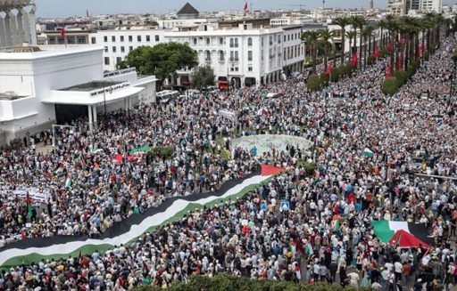 مراکش میں ہزاروں افراد غزہ کے لیے سڑکوں پر نکل آئے، اسرائیل سے تعلقات ختم کرنے کا مطالبہ