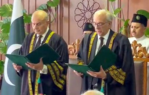 جسٹس منصور علی شاہ نے قائم مقام چیف جسٹس پاکستان کا حلف اٹھا لیا
